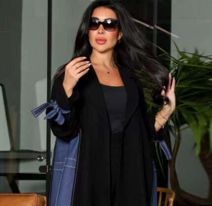 • Black Abaya with Denim Panel Black Abaya with Denim Panel 459,00 د.إ